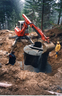 .) 1986-1988: Errichtung von: 2 Quellfassungen, 4 Schachtbauwerken, Sanierung des Hochbehälters "Lamberg", 1 Verwaltungsgebäude, 13 km Transport- und Versorgungsleitungen, 5 Hydranten, 350 Hausanschlüsse, 1 Steuerungs- und Überwachungsanlage