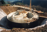 .) 1986-1988: Errichtung von: 2 Quellfassungen, 4 Schachtbauwerken, Sanierung des Hochbehälters "Lamberg", 1 Verwaltungsgebäude, 13 km Transport- und Versorgungsleitungen, 5 Hydranten, 350 Hausanschlüsse, 1 Steuerungs- und Überwachungsanlage